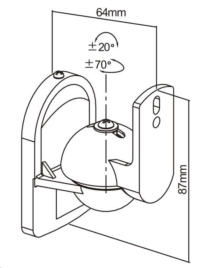 Univerzální nástěnné držáky na reproduktory Vlastnosti: - Náklon: ±20° - Rotace: ±70° - Balení obsahuje 2 držáky včetně šroubů a hmoždinek - Max. zatížení: 3,5 kg - Kód: CI-122.