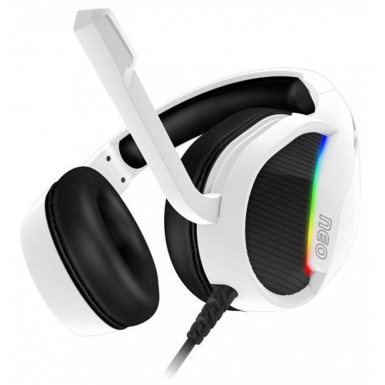 Profesionální gamingová sluchátka se sklápěcím mikrofonem NEO s podsvětlením pro hráče počítačových her. Sluchátka jsou vybavena RGB Rainbow podsvícením, ovládáním hlasitosti, sklápěcím mikrofonem a oblíbenými pozlacenými konektory. V balení najdete i 3.5 mm jack adaptér pro maximální kompatibilitu a arch promo samolepek herní řady NEO.
