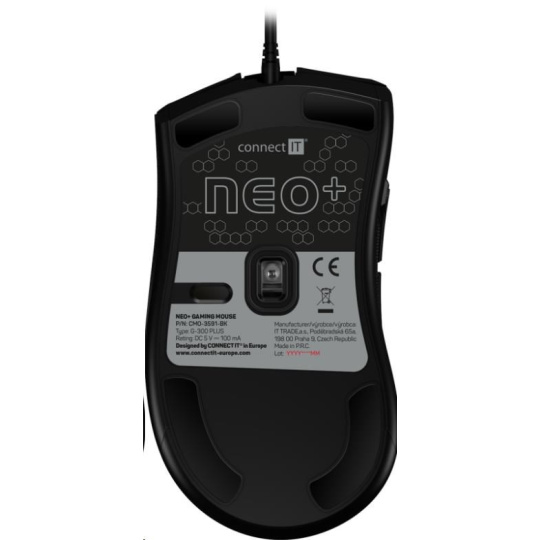 Kromě běžných funkcí je tato myš unikátní nastavitelnou velikostí a to pomocí odnímatelné pravé bočnice. Takto si myš přizpůsobíte svým potřebám. Část myši je pokryta povrchem "honeycomb grip" pro stabilnější a pevnější úchop i při dlouhodobém hraní. K této myši je dodáván arch promo samolepek "CONNECT IT NEO" a software ke stažení zcela zdarma na stránkách www.connectit-europe.com. Samozřejmostí je u této série prémiový oplet přívodního kabelu a pozlacený USB konektor.