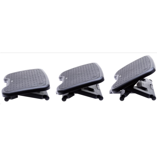 Popis produktu: Polohovatelná podložka pod nohy Nastavitelná výška a úhel pro maximální pohodlí a komfort Výška: 110 - 124 mm Protiskluzové podložky pro vetší stabilitu Barva: černá Masážní hrbolatý povrch pro unavené nohy.