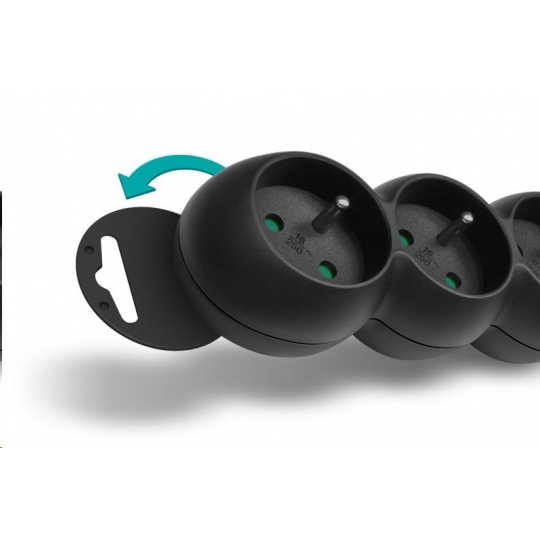 Prodlužovací kabelový přívod na 230V je vybaven dětskou ochranou všech zásuvek – zásuvky jsou přístupné pouze v případě zasunutí obou vidlic najednou, nelze tedy zasunout jednotlivě např. pouze šroubovák nebo pletací jehlici. Díky pootočení zásuvek o 45° je možné používat i objemnější napájecí adaptéry nebo úhlové koncovky. Výsuvné očko v horní části zásuvkového modulu umožňuje zavěšení nebo pevnou instalaci na stěnu (s výhodou využijete např. v dílnách a garážích). Výrobek byl testován a certifikován v evropském testovacím centru a splňuje nejpřísnější bezpečnostní požadavky a nejnovější normy, takže umožňuje zapojení spotřebičů o celkovém příkonu až 2500 W.