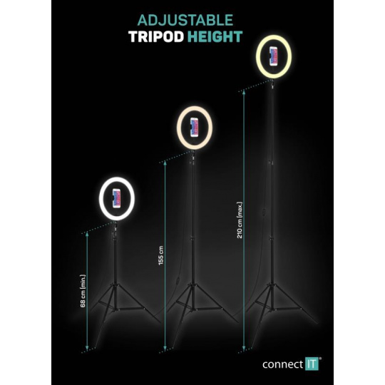 CONNECT IT Selfie12Ring kruhové 12" LED světlo + stativ 2,1 m