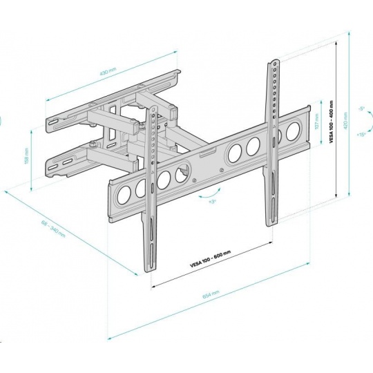 Nastavení do požadovaného úhlu nevyžaduje povolení ani opětovné utažení šroubů (stačí pouze uchopit okraje TV a nastavit úhel)