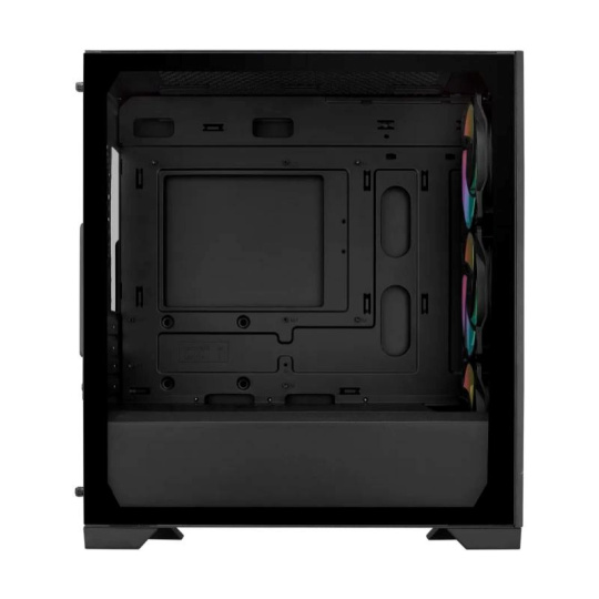 Elite 301 je vybaven velkou sací mřížkou a 3x 120mm ventilátory ARGB, které zajišťují hladký a efektivní chod systému. Plně černý povlak a přiložený kryt PSU umožňuje čisté sestavení, které je vizuálně přitažlivé i funkční.