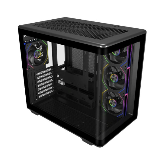 Boční panel z prvotřídního tvrzeného skla poskytuje jasný, ničím nerušený výhled na vaši sestavu a ukazuje vaše komponenty v elegantním, moderním stylu.