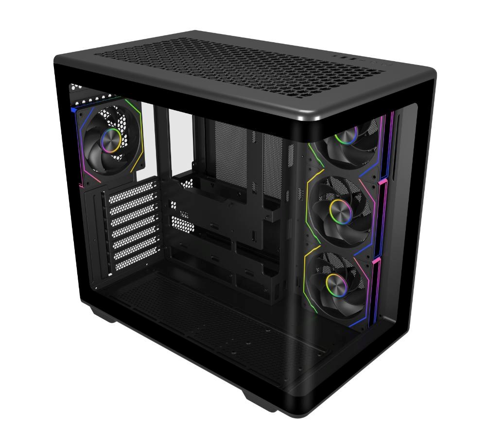 Boční panel z prvotřídního tvrzeného skla poskytuje jasný, ničím nerušený výhled na vaši sestavu a ukazuje vaše komponenty v elegantním, moderním stylu.