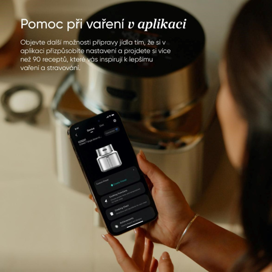 • Chytré ovládání přes aplikaci přináší recepty, plánování a plnou kontrolu přímo do vašeho telefonu