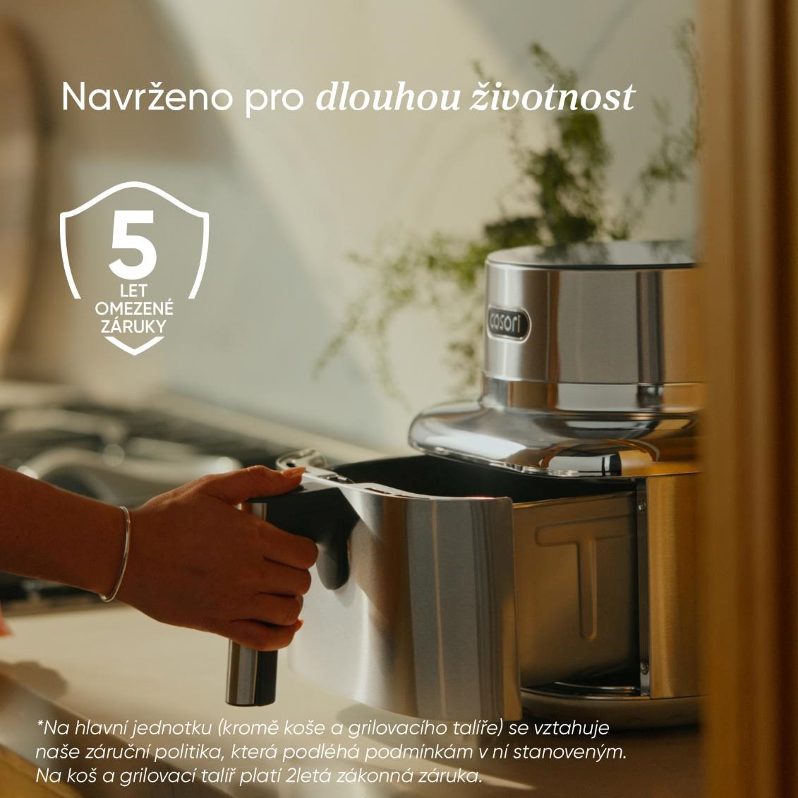 Součástí balení je elegantní kuchařka plná inspirace, dostupná také v online české verzi, která vás provede zdravým vařením krok za krokem. Prodloužená 5letá záruka, testovaná životnost 2000 hodin a odolnost na 300 mycích cyklů v myčce dokazují, že Iconic je vytvořený na dlouhá léta každodenní radosti. To vše v těle, které vypadá stejně dobře, jako vaří. COSORI Iconic není spotřebič – je to styl života, kde se design, zdraví a výkon setkávají v dokonalé harmonii.
