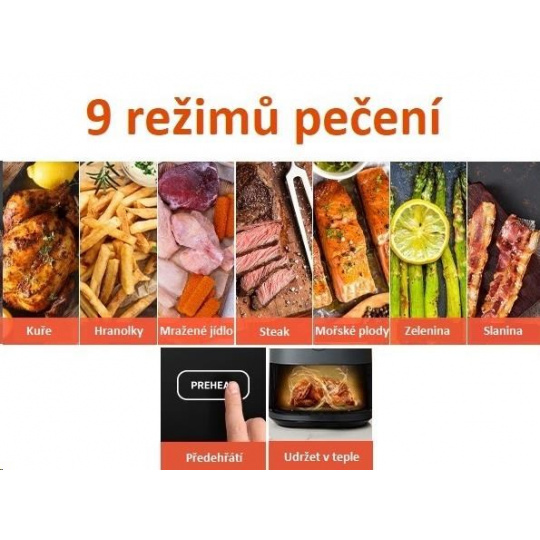 Horký vzduch rotuje kolem jídla ze všech stran a tím dosahuje kvalitního a rovnoměrného propečení a uvaření pokrmů. Díky této technologii se fritéza předehřeje během pouhých 5 minut.