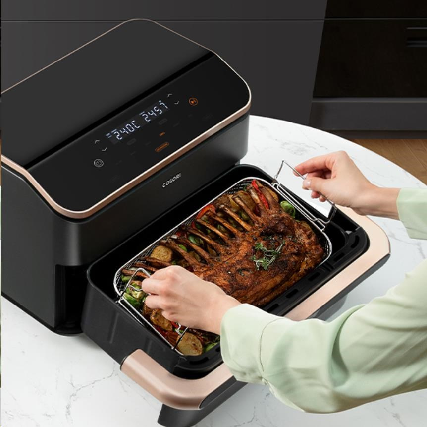 Univerzální grilovací mřížka pro fritézy Cosori Twin Fry pro použití s funkcí „Grandzone“. Možnost mytí v myčce. Rozměry (Š x H x V): 36,8 x 18,8 x 11,6 cm Nikdy nečistěte mřížku, pokud je příliš horká. Produkt je vhodný pouze pro Cosori Dual Blaze TwinFry.