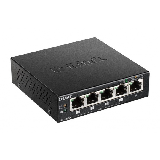 D-Link DES-1005P B1 5-Port 10/100 PoE Desktop Switch, 4x PoE+, 60W pro PoE