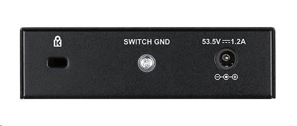 D-Link DGS-1005P 5-port Gigabit Desktop PoE+ Switch, 4 porty jsou PoE+, PoE budget 60W
