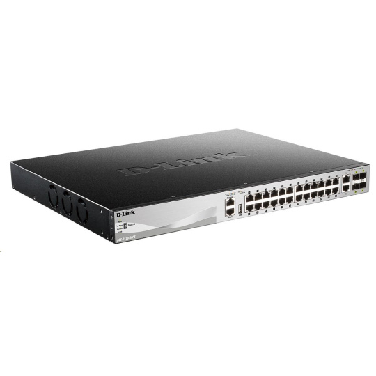 D-Link DGS-3130-30PS/E L3 Stackable Managed Gigabit PoE Switch, 24x PoE gigabit, 2x 10GBASE-T, 4x SFP+, 370W PoE