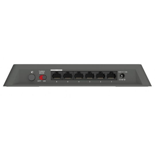 6-Port Multi-Gigabit Unmanaged Switch DMS-106XT Turbocharged multi-gig for work or play 5 x 2.5 Gbps Ethernet Ports for unrestricted Wi-Fi 6 router or AP connections 1 x 10 Gbps Ethernet port for uplink or NAS server connection Smart Turbo Mode delivers Quality of Service (QoS) and port-based priority for uninterrupted online gaming and 4K streaming Power efficiency design for low power consumption LED conveniently indicates port speed status Durable matte gray aluminum alloy casing Fanless operation for enhanced reliability and soundless performance 6-port Multi-Gigabit Unmanaged Switch - Full 2.5 Gbps Ethernet ports for unrestricted Wi-Fi 6 router or AP connections - 5 x 802.3bz 2.5G ports - 1 x 802.3an 10G port - 10 Gbps port for NAS or Uplink connectivity - First-rate power efficiency - Auto or configurable MDI/MDIX - 802.3x Flow Control - 802.1p QoS - 802.3az Energy-Efficient Ethernet (EEE) - Switching Capacity 45 Gbps - Transmission method: Store-and-Forward - Packet Filtering/ Forwarding Rates: Gigabit Ethernet:1,488,000 pps per port - MAC Address Table 4K - MTBF 489,941 hours - Fanless operation - Durable aluminium alloy desktop only housing - Selectable mode for low latency performance - Dimensions (L x W x H) 217 x 163 x 33 mm - Weight 680 g.