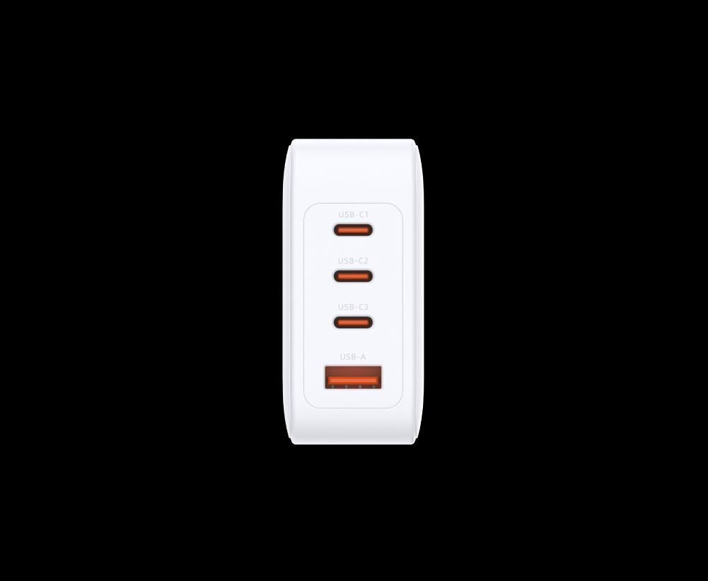 GaN Technology: Facilitates powerful, efficient, and safe charging with comprehensive safety protection 100W Fast Charging: Fast charging your laptop, tablet, cell phone, and more with up to PD 3.0/100W output Four USB-C/USB-A Ports: Features USB-C x 3 and USB-A x 1 to charge 4 devices simultaneously Safety Protection: Power supply is disabled in the errors caused by overcurrent, overvoltage, overcharge, overtemperature or short circuit * The plug type will vary based on the market spec.