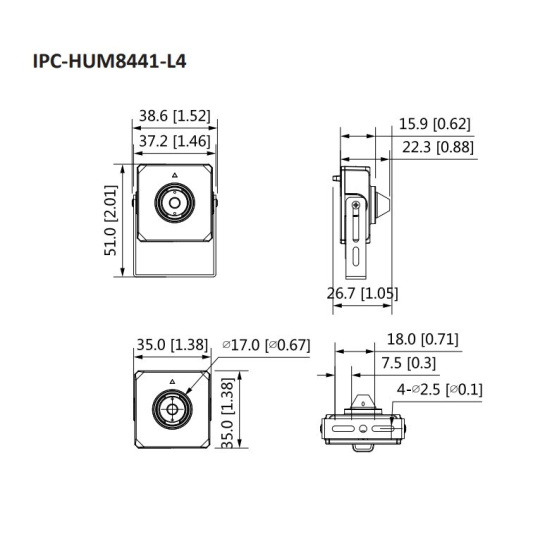 Dahua KIT/IPC-HUM8441-E1-L4-0280B, IP kamera, Pinhole, 4Mpx, 1/2.7" CMOS, objektiv 2,8 mm, PoE