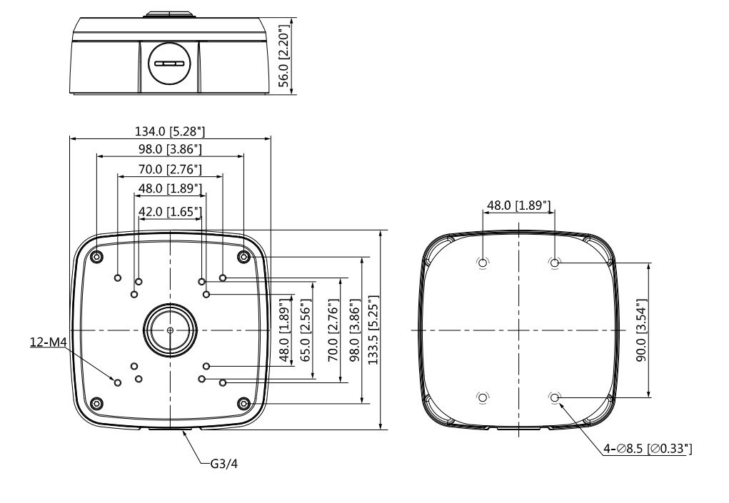 Dahua PFA121-V2, zapojovací box hranatý univerzální