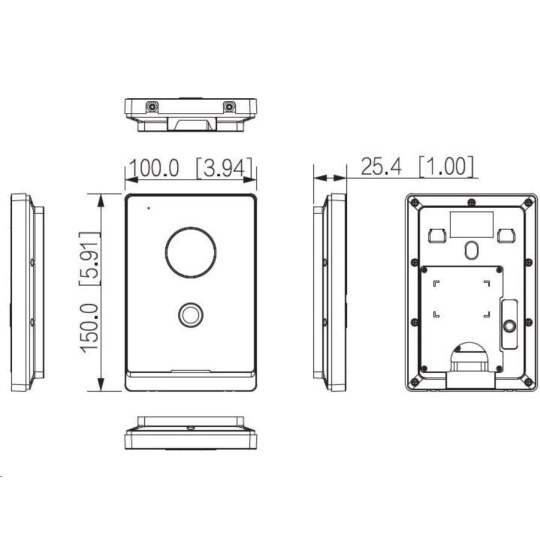 Venkovní provedení IP65, povrchová instalace, podpora PoE napájení, připojení je realizováno skrze RJ-45 konektor s rychlostí 10/100 Mbps na protokolu TCP/SIP.