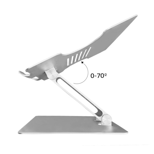 Plně nastavitelný stojan na notebook umožňuje nastavit váš notebook do jakékoliv výšky a úhlu pro ergonomicky správné držení těla. Celý je vyroben z vysoce kvalitní hliníkové slitiny a navržen v moderním minimalistickém designu. ? Plně a snadno nastavitelný podle vašich potřeb ? Zvedá obrazovku až o 28 cm pro optimální výšku ? Platforma nastavitelná až do úhlu 70 ° pro ideální pozorovací úhel ? Lehká konstrukce a skládací design pro snadné přenášení ? Výřezy v konstrukci pro lepší proudění vzduchu a chlazení notebooku ? Pevná a odolná hliníková slitina ? Silikonové podložky a nožky pro stabilitu a ochranu povrchu stolu S DESQ stojanem na notebook nastavíte displej do ideální výšky, což podporuje zdravé a ergonomické držení těla a pomáhá předcházet bolestem zad, krku a únavě očí..