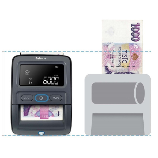 - Možnost dokoupení zásobníku SAFESCAN RS-100 s katalogovým číslem 112-0695, díky kteréme se z detektoru stane kompaktní počítačka pro 20 kusů bankovek.