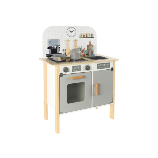 Menší dětská kuchyňka v neutrálních barvách, doplněná o bohaté příslušenství a textilní kuchařský set ZDARMA, promění holčičky i chlapce v opravdové kuchaře. Kuchyňka ve skandinávskému stylu, se spotřebiči a parádními doplňky, je vhodná do každé místnosti. Menší dřevěná kuchyňka je edukativní hračkou, která umožní dětem vyzkoušet si vaření, pečení a další činnosti bezpečným dětským způsobem. Při hře v kuchyňce děti zdokonalí své dovednosti a ještě si užijí spoustu zábavy..