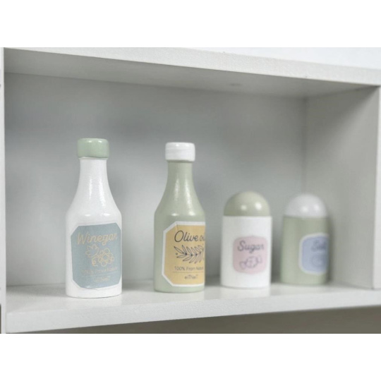 Stylová dřevěná dětská kuchyňka umožní malým kuchařkám a kuchařům vrhnout se do vaření a pečení, přípravy pokrmů a do kuchyňských prací přímo ve své vlastní kuchyni. V dřevěné kuchyňce v krásném neutrálním barevném provedení mohou děti popustit uzdu své fantazii a proměnit se v opravdové kulinářské mistry. K ruce jim budou vestavěné spotřebiče i nádobí, se kterým půjde vaření i pečení jako po másle. V kuchyňce nechybí pečící trouba, mikrovlnná trouba, sporák se 2 plotýnkami, dřez na špinavé nádobí ani hodiny. Pro přípravu chutných pokrmů je dětská kuchyňka dovybavena různým kořením. Tato edukativní hračka umožní dětem vyzkoušet si dospělácké činnosti bezpečným dětským způsobem. K nátěru se používají vodou ředitelné barvy, vhodné a bezpečné pro děti. Díky přídavným (nasazovacím) nožkám poroste kuchyňka s vaším dítětem, po přidání nožek se celá (tedy i pracovní deska) zvedne o 6 cm.