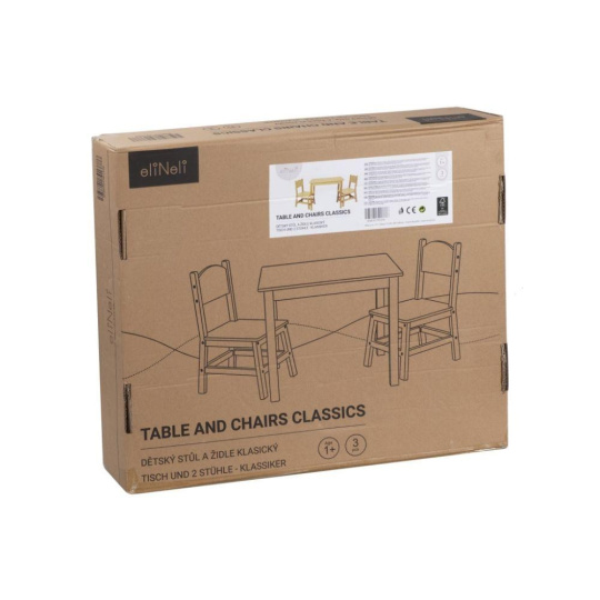 Dětský stolek a 2 židle, v klasickém designu, je krásným a praktickým setem dětského nábytku do dětského pokoje, kuchyně, jídelny i hracího koutku. U stolečku si mohou děti malovat a kreslit, tvořit, prohlížet oblíbené knihy, hrát si nebo si dát svačinku. Dětský stůl a židle v přírodním (natur) provedení je vhodný pro holčičky i kluky, do každého interiéru..