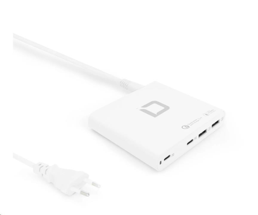 Výstupní napětí (5 - 20 V) a nabíjecí proud (až 5 A) se automaticky přizpůsobují připojeným zařízením.