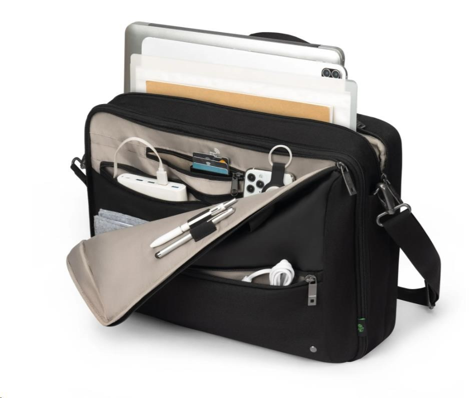 Flexibilita se setkává s bezpečností v tašce Top Traveller DUAL FIVE, konvertibilní pracovní tašce, která se plynule promění z elegantní aktovky v praktický batoh. Je vybavena ochranou DCT Notebook Protection a uzamykatelnou přihrádkou, takže váš notebook zůstane v bezpečí, zatímco skryté popruhy batohu umožňují snadné přepínání mezi různými způsoby nošení. Hlavní přihrádka nabízí prostor pro tablety, dokumenty a mobilní vybavení, zatímco přední část obsahuje strukturované kapsy na příslušenství a samostatnou malou kapsu na kabely a nezbytnosti. Navíc s 35,5% recyklovanými PET lahvemi použitými při výrobě je to chytrá a ekologická volba.