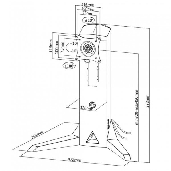 Stolní podstavec s držákem monitoru Tv Fiber Mounts FM110 Podstava na monitor Tv 17-32", VESA 75x75 a 100x100, nastavení výšky 32-45cm, náklonu +/- 10°, konektory USB, mikrofon a repro, nosnost 8kg Chcete mít monitor umístěný kdekoliv na stole a nechcete do stolu vrtat díru? Záleží Vám na dizajnu a chtěli byste mít možnost monitor polohovat? Tak právě pro Vás je ideální držák - podstavec na na monitory Fiber Mounts FM110, který vyniká kvalitou, krásným dizajnem a možností polohovat monitor. Výhodou jsou pak i 2 porty USB 3.0 a konektor pro sluchátka a mikrofon. Stolní držák podstavec na monitor nebo televizor, nádherné dizajnové provedení, polohovací, TOP kvalita - Fiber Mounts FM110 Kancelářský stolní držák podstavec na monitory 17-32 palců, polohovací, USB porty, TOP kvalita, nádherný dizajn - Fiber Mounts FM110 Technické údaje: nosnost 8kg podpora VESA 75x75 a 100x100, možnost rozšíření na 200x100 nebo 200x200 ideální na monitory i televizory s úhlopříčkou 17" až 32" nastavení výšky držáku 320mm až 450mm nastavitelný sklon obrazovky +10° až -10° funkce PIVOT - rotace monitoru, možnost dát obrazovku na šířku nebo na výšku korekce roviny obrazovky otáčení do stran vestavěné 2 porty USB 3.0 vestavěný port na sluchátka a mikrofon robustní, odolný, krásný dizajn vynikající kvalita barevné provedení černé záruka 5 let Kvalitní a velmi pěkný podstavec na monitor nebo televizor Fiber Mounts FM110 má integrované porty 2x USB 3.0 a porty na sluchátka a monitor Stolní držák podstavec na monitory FM110 podporuje VESA standardy: VESA 75x75 VESA 100x100 možnost zakoupení rozšíření na VESA 200x100 a 100x200 možnost zakoupení rozšíření na VESA 200x200.