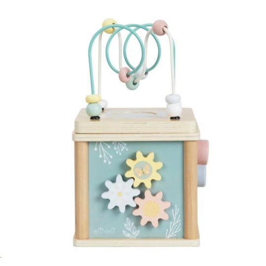 Dřevěná kostka s aktivitami představuje hned 5 hraček v jedné. Každá strana aktivity kostky je originální, přináší nové dobrodružství a zdokonaluje dětské dovednosti. Hrací prvky, pastelové barvy a zvířátka z lesa i ze ZOO motivují děti ke hře a pečlivému prozkoumání. Děti při hře s activity cube zdokonalují motorické dovednosti, koordinaci, logické myšlení, učí se soustředit a trpělivosti.