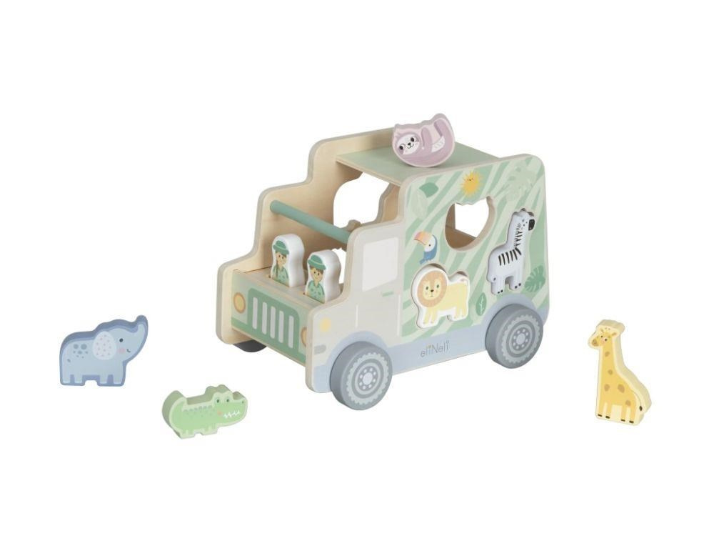 Dřevěné autíčko 2v1 nabízí spoustu možností ke hře. Velké autíčko je parádní hračkou samo o sobě, ale protože se jedná o multifunkční dětskou hračku, je zároveň i originální vkládačkou s dřevěnými vkládacími dílky v podobě zvířátek ze ZOO. Děti při nakládání zvířátek a při hře s autíčkem zdokonalují jemnou motoriku, koordinaci očí a rukou, logické myšlení..