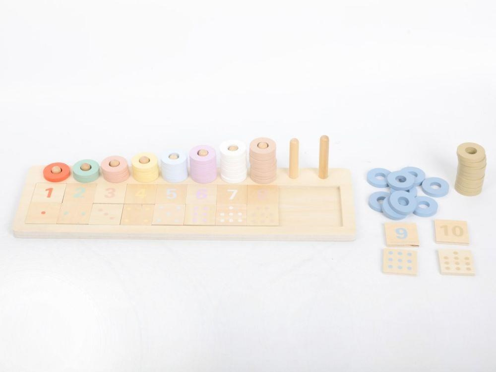 Dřevěné nasazovací počítadlo je vzdělávací pomůckou navrženou v souladu s montessori principy. Barevné provedení respektuje barevnou paletu montessori, kvalitní přírodní materiály jsou zárukou odolnosti a dlouhé životnosti. Dřevěné počítadlo je multifunkční hračkou - nasazovací hrou, vkládačkou i vzdělávací pomůckou, která zdokonalí motorické dovednosti, koordinaci očí a rukou, naučí děti poznávat barvičky a počítat..