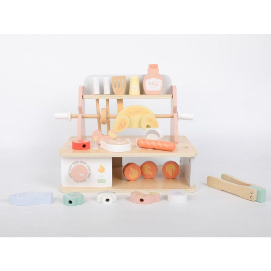 Dřevěný gril pro děti s doplňky - BBQ sada