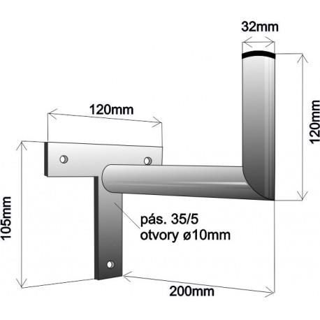 Držák antény na zeď, tvar T mini, galvanický zinek, délka 20cm