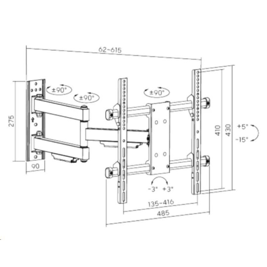 Otočný sklopný výsuvný držák Tv Fiber Mounts RAPTOR Kvalitní držák Tv 43" - 60", vzdálenost od zdi 62 - 615mm, otočný až +90° / -90°, naklápění +5° / -15°, kvalitní pevná konstrukce, úchytky na kabeláž, instalační materiál, VESA 200x100 až 400x400, nosnost 50kg, záruka 10 let Kvalitní nástěnný držák na televize Fiber Mounts RAPTOR Představujeme Fiber Mounts RAPTOR - kvalitní držák pro televizi, který promění váš obývací pokoj v dynamické multimediální centrum. S Fiber Mounts RAPTOR se každý filmový večer stane nezapomenutelným zážitkem, a každý sportovní přenos tak živým, jako byste byli přímo na stadionu. Nenechte se svazovat statickým umístěním vaší televize. Díky otočnému mechanismu +90° / -90° a naklápění +5° / -15° si můžete obrazovku nastavit přesně podle vašich potřeb. Ať už chcete sledovat oblíbený film z pohodlí gauče, křesla nebo potřebujete upravit úhel pohledu pro videohovor, Fiber Mounts RAPTOR vám to umožní s lehkostí. Navíc, s vzdáleností od zdi 62 - 615mm poskytuje Fiber Mounts RAPTOR nejen flexibilitu v umístění, ale také jednoduchý přístup k zadním portům vaší televize pro rychlé připojení nebo odpojení zařízení. A díky pevné konstrukci a nosnosti až 50kg můžete mít jistotu, že váš 43" - 60" televizor bude v bezpečí. Nezapomněli jsme ani na estetickou stránku. S úchytkami na kabeláž bude váš obývací pokoj vždy vypadat uklizeně a organizovaně, bez rušivých kabelů visících z televize. A s přiloženým instalačním materiálem a zárukou 10 let je montáž a používání Fiber Mounts RAPTOR hračka. Televizní držák kvalitní robustní konstrukce Fiber Mounts RAPTOR Technické údaje: nosnost 50kg podpora VESA standardů pro zavěšení Tv 200x100 až 600x400 ideální na televize a obrazovky s úhlopříčkou 43" až 60" nastavitelná vzdálenost od zdi 62 - 615mm otáčení obrazovky do stran až +90° / -90° naklápění +5° / -15° korekce roviny obrazovky +3° / -3° kvalitní velmi pevná konstrukce úchytky na kabeláž nástěnný úchyt o rozměrech 275 x 90mm barevné provedení černé záruka 10 let.