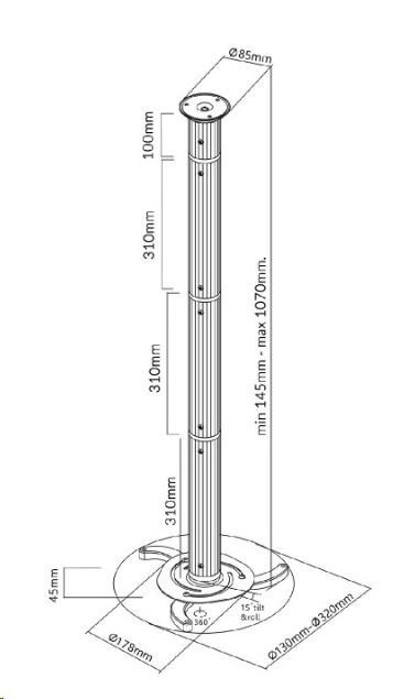 Nástěnný držák pro zavěšení menších televizorů nebo monitorů s úhlopříčkou 15-30". Držák podporuje VESA standardy 75x75 a 100x100, umožňuje nastavení vzdálenosti od zdi od 82mm do 216mm, možnost naklopení až +/- 20° a otáčení do stran +/- 45°. Ocelová konstrukce s nosností 15kg. Barevné provedení černé, záruka 5 let.