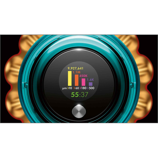 Displej LCD ukazuje, co bylo vysáto, a v reálném čase zobrazuje vědecký důkaz o hloubkovém čištění.
