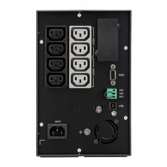 | Komunikace | Port USB (kompatibilní s HID) Sériový port (RS232) Mini-terminálový blok pro vzdálené zapnutí/vypnutí a vzdálené vypnutí napájení Suché kontakty (2 výstupy, optočlen, RJ) |