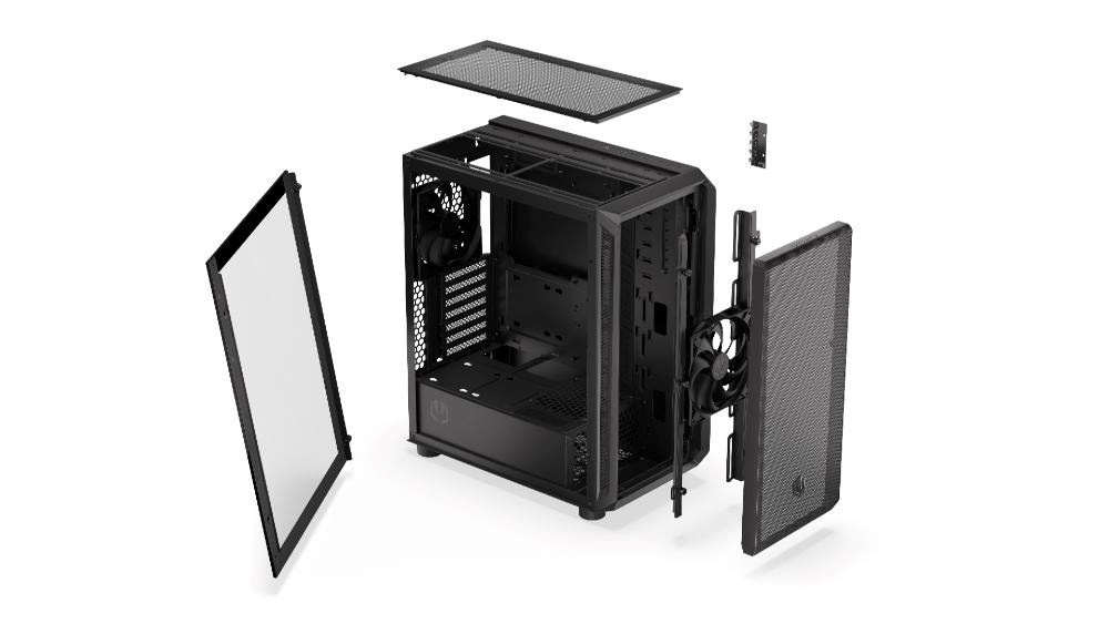 Vzdušná počítačová skříň Arx 500 Core je kompatibilní se základními deskami ATX, microATX a mini-ITX. Pojme ty nejúčinnější komponenty, včetně radiátorů o průměru až 360 mm a až 7 ventilátorů - včetně dvou předinstalovaných tichých ventilátorů Stratus 140 PWM, které zajišťují účinné chlazení. Jemně perforované přední a horní panely fungují jako filtry, zlepšují proudění vzduchu a zároveň chrání interiér před prachem.