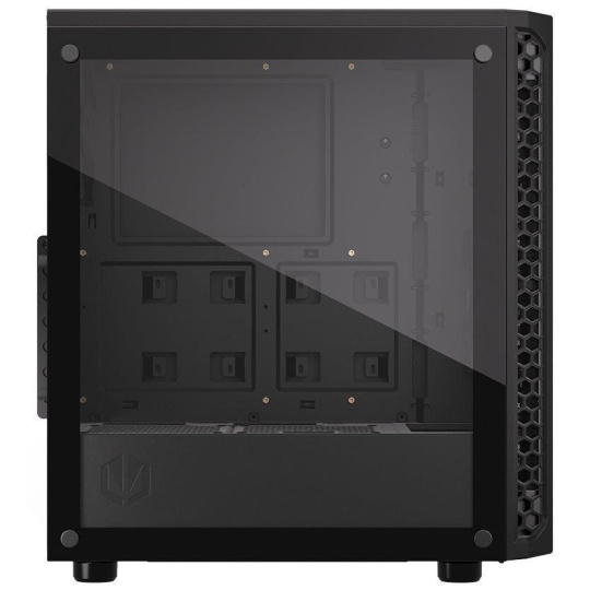 Skříň formátu Middle Tower s průhlednou bočnicí z tvrzeného skla nabízí dvě 2,5" pozice pro SSD disky a dvě 3,5" pozice pro pevné disky. Na horní části se nachází dva USB 3.0 porty, sluchátkový výstup a audio vstup pro mikrofon. Vybavena je dvěma 120 mm ventilátory, které spolu s perforovaným čelním panelem zajišťují dostatečné proudění vzduchu. Důmyslné řešení umožňuje pohodlné umístění až 360 mm dlouhého výměníku vodního chlazení na přední straně. Ve skříni je dostatek prostoru pro chladič CPU do výšky až 161 mm a grafickou kartu o délce až 350 mm. Dodávána je bez zdroje. Součástí je také sada prachových filtrů.