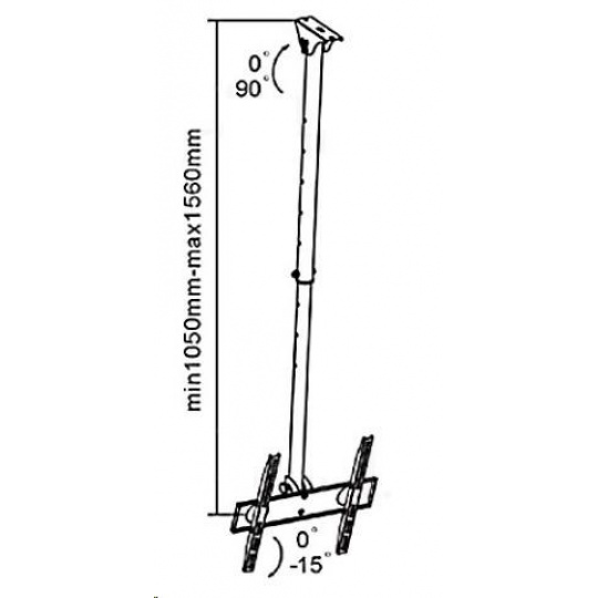 Vysoce kvalitní stropní držák vhodný na všechny typy Tv s úhlopříčkou do 52". Držák umožňuje nastavení vzdálenosti od stropu v rozmezí 105 - 156cm, natočení do stran bez omezení a náklonění Tv. Maximální zatížení stropního držáku je 50kg. Stropní držák Tv se díky své kvalitě a velmi příznivé ceně stal velmi oblíbeným. Fiber Novelty FN-C400 Technické údaje: maximální zatížení 50kg vhodný na Tv 23" - 52" VESA standart 100x100 až 400x400mm nastavitelná vzdálenost od stropu 105 - 156cm teleskopická konstrukce držák neumožňuje otáčení televizoru do stran náklon 0° až -15° vhodný pro montáž na šikmé stropy náklopný úchyt pro kotvení do stropu 0-90° výborná kvalita snadná montáž černá barva záruka 2 roky Držák Tv na strop Fiber Novelty FN-C400 podporuje VESA standardy: VESA 75x75 VESA 100x100 VESA 200x100 VESA 200x200 VESA 300x200 VESA 300x300 VESA 400x200 VESA 400x300 VESA 400x400.