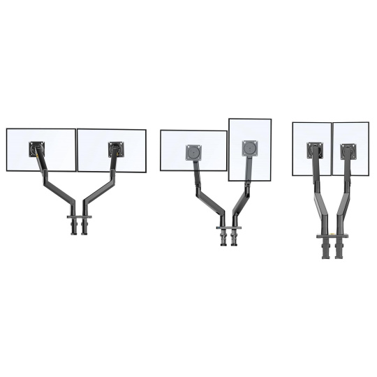 Profesionální stolní držák na 2 monitory 17-32", nastavitelná výška 200-520mm, otočný +/-360°, náklon +85°/-30°, max. vzdálenost 630mm, PIVOT, USB port, vedení kabeláže, VESA 75x75 a 100x100, nosnost 30kg.... více
