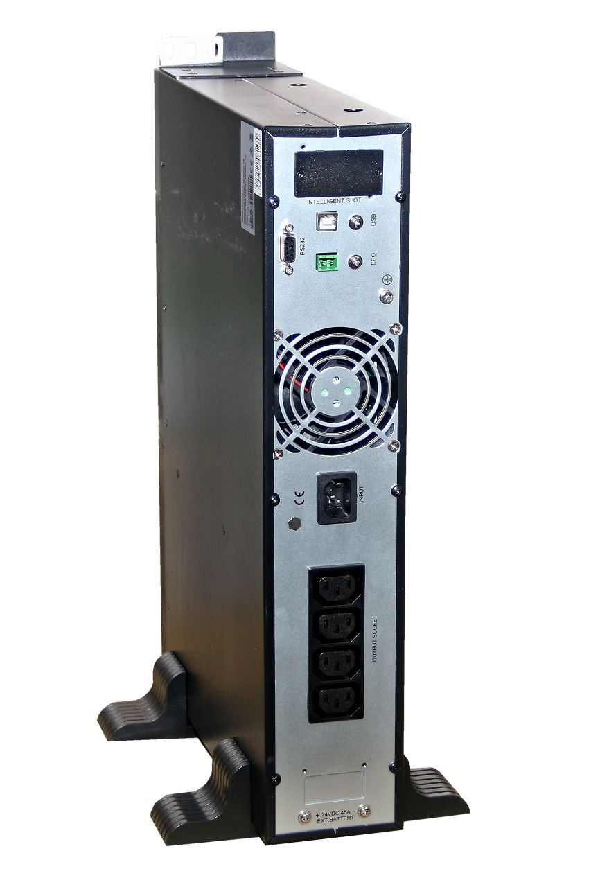 Online záložní zdroj EA901PRT se sinusovým výstupem. Rozměrově určen pro serverové aplikace (montáž do rack 19“). Pro umístění na výšku jsou přibaleny plastové podstavce. Na čelním panelu 3 ovládací tlačítka a informační displej.