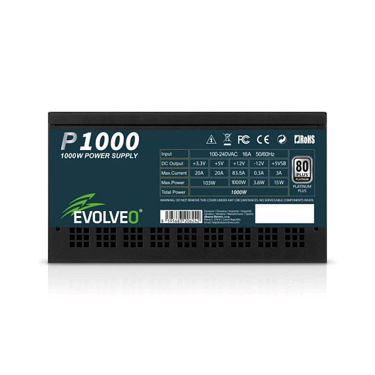 EVOLVEO P1000 zdroj 1000W, 80+ PLATINUM, ATX 3.1, aPFC, 140 mm ventilátor, 3 roky záruka, černý