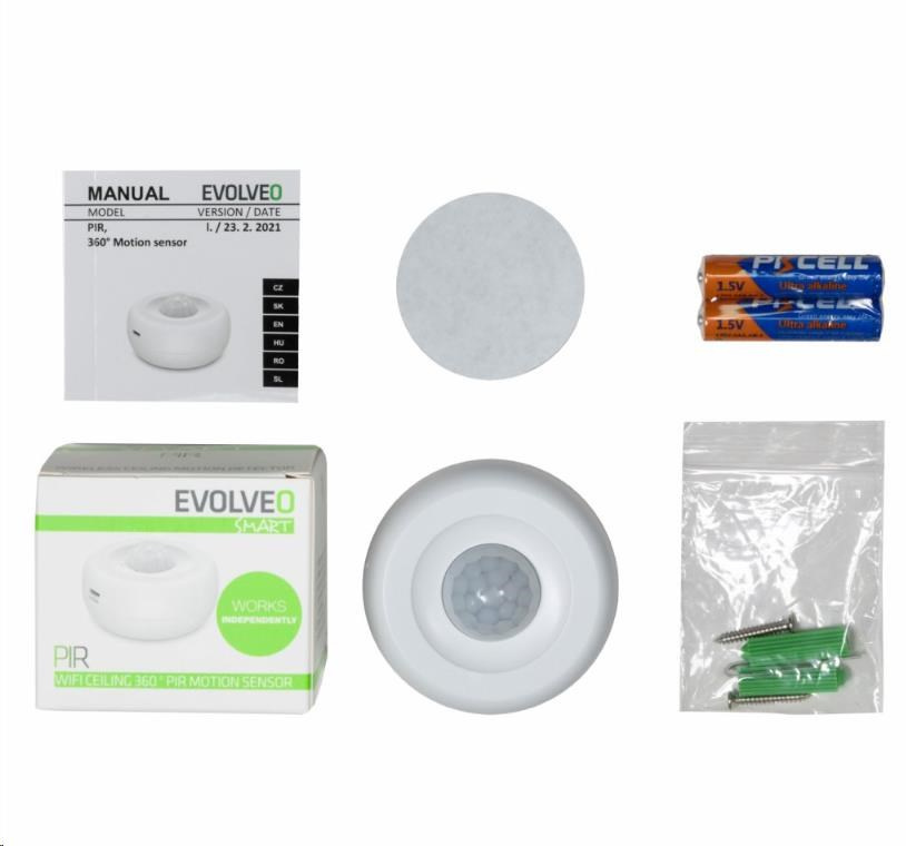 EVOLVEO PIR, chytrý WiFi bezdrátový stropní 360° PIR snímač pohybu