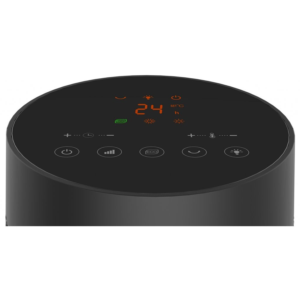 Jednoduchost obsluhy i jednoduchost čištění doplňuje digitální ovládací panel s dotykovými ovládacími senzory a barevným displejem. Stačí pouhý dotek prstem na příslušnou ikonu na displeji a topidlo okamžitě reaguje a plní vaše příkazy. Tento beztlačítkový ovládací prvek se vyznačuje zejména výrazně vyšší životností oproti klasickým ovládacím tlačítkům a navíc jej lze pohodlně udržovat a čistit díky absenci mechanických prvků a výstupků. Hladký celistvý povrch se proto velmi jednoduše udržuje a čistí – stačí pouze jemně setřít vlhkým hadříkem.