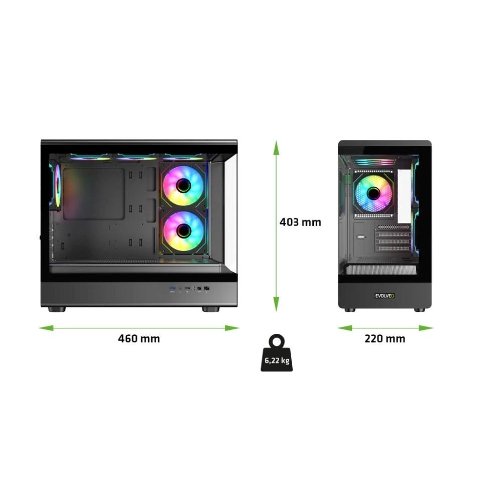 EVOLVEO Ursus, skříň mATX, 6x ARGB ventilátor 120mm, skleněná bočnice + přední panel
