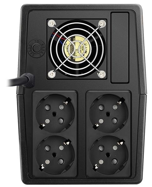 UPS zdroj slouží jako záložní baterie, která udrží počítače, servery a jinou IT techniku v chodu při výpadku elektrického proudu. Přednosti tohoto modelu jsou především jeho kompaktní rozměry, vysoká spolehlivost zaručená kvalitním mikroprocesorem, odolnost vůči automatickému vypnutí, nabíjení i v off-režimu a funkce studeného startu.