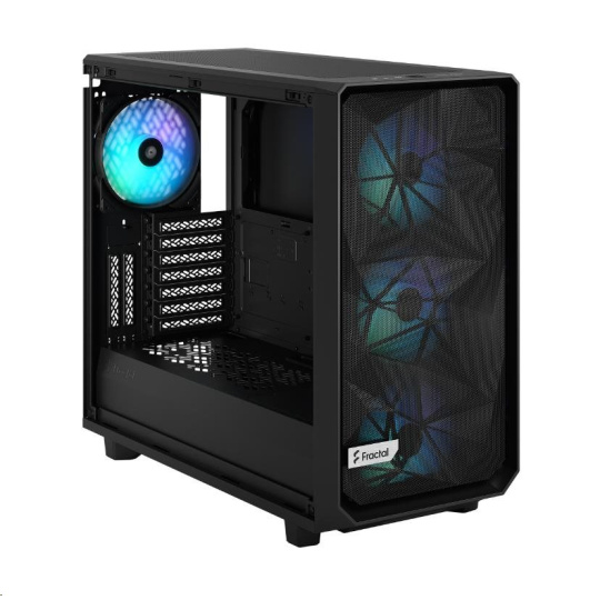 The Meshify 2 RGB is a high-performance case with a bold, stealth-inspired aesthetic. Its striking exterior features bolt-free, flush tempered glass, a fully removable top granting excellent interior access, and a front with USB-C, hinged mesh panel and removable nylon filter. The flexible dual-layout interior supports large storage arrays and multi-radiator setups that makes cooling a breeze.